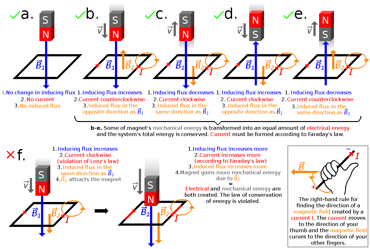 楞次定律:由于磁通量的改变而产生的感应电流,其方向为抗拒磁通量改变的方向。