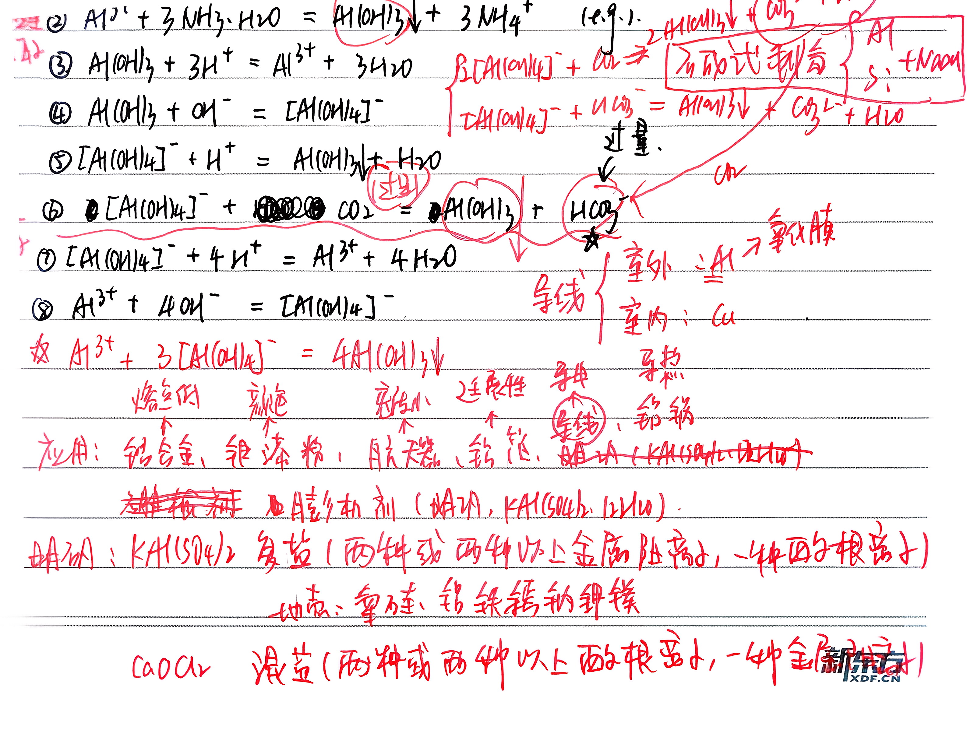 | ⑧ | \(\ce{Al^3+ + 4OH- -> [Al(OH)4]-}\) |