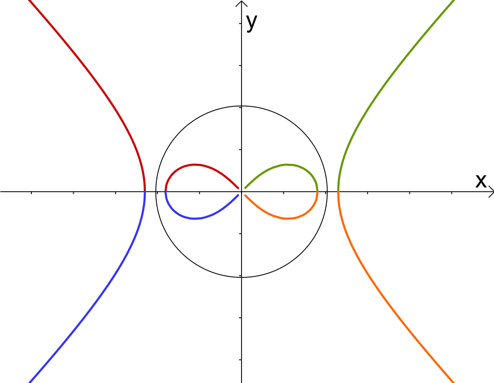伯努利双纽线的形状类似无穷大的符号,是双曲线关于圆心在双曲线中心的圆的反演图形。