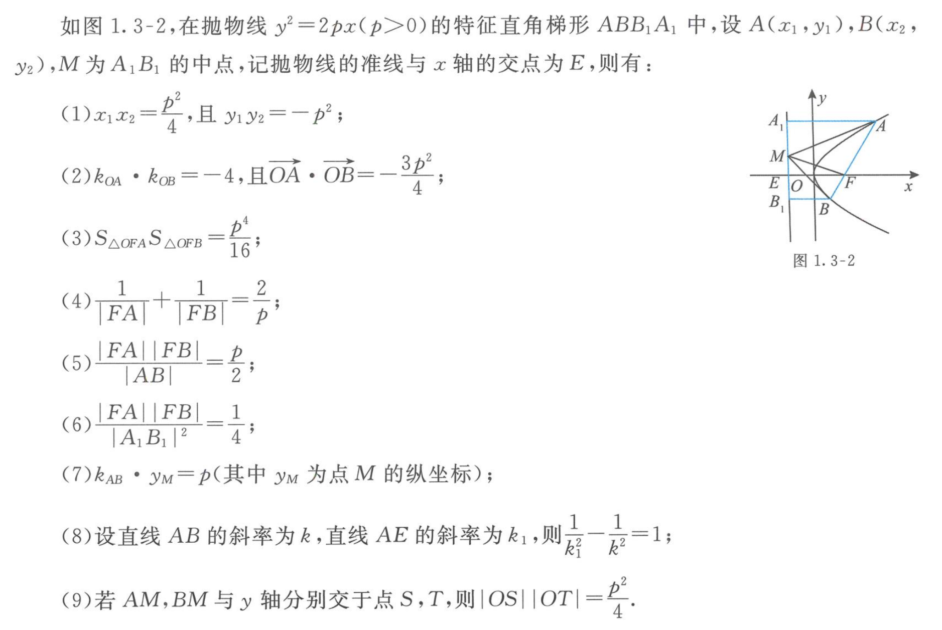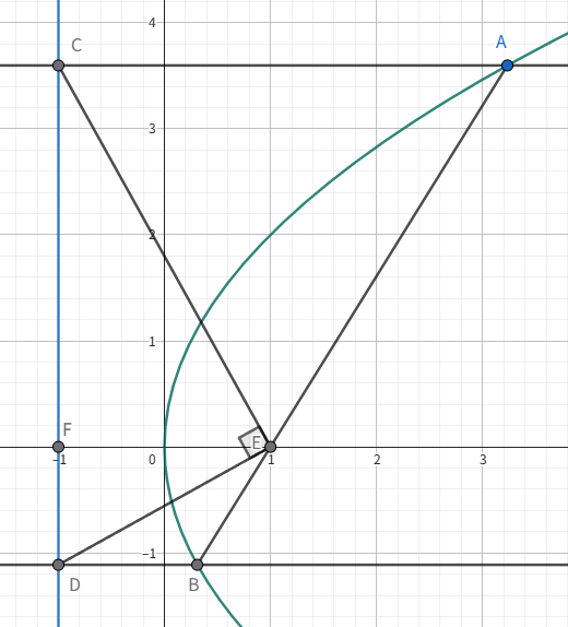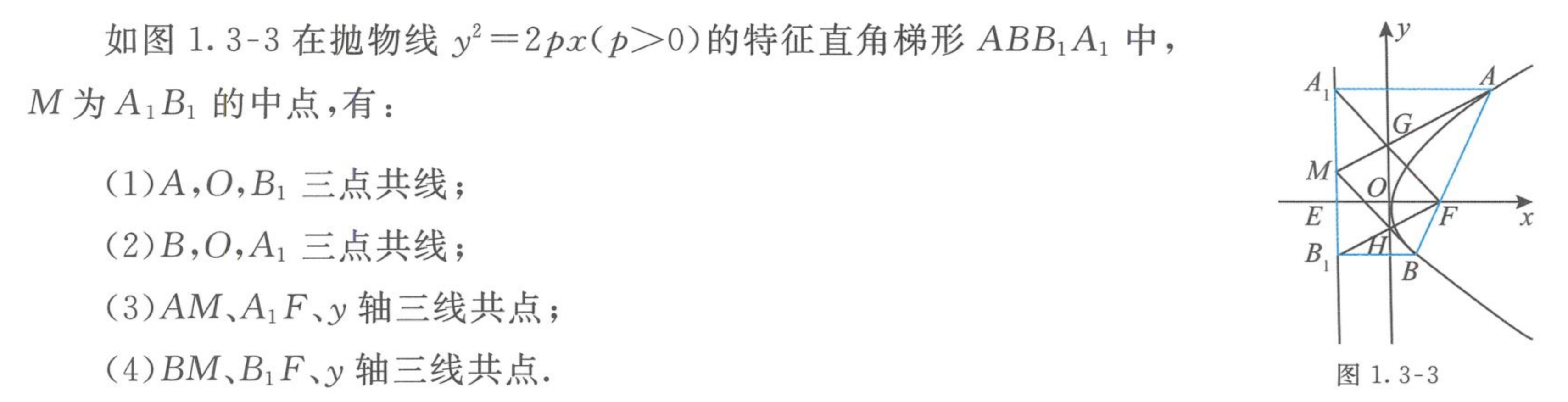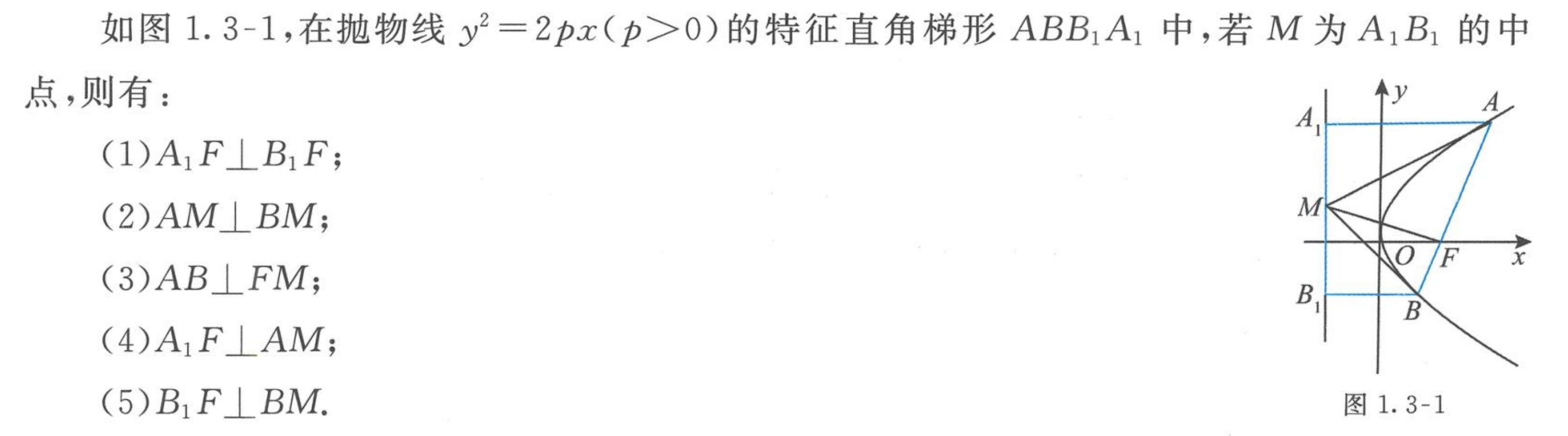 过焦点的直线交抛物线与点 \(A,B\) 过 \(A,B\) 做准线 \(\ell\) 的垂线 \(AC,BC\),锁围成的直角梯形称为抛物线的特征直角梯形。