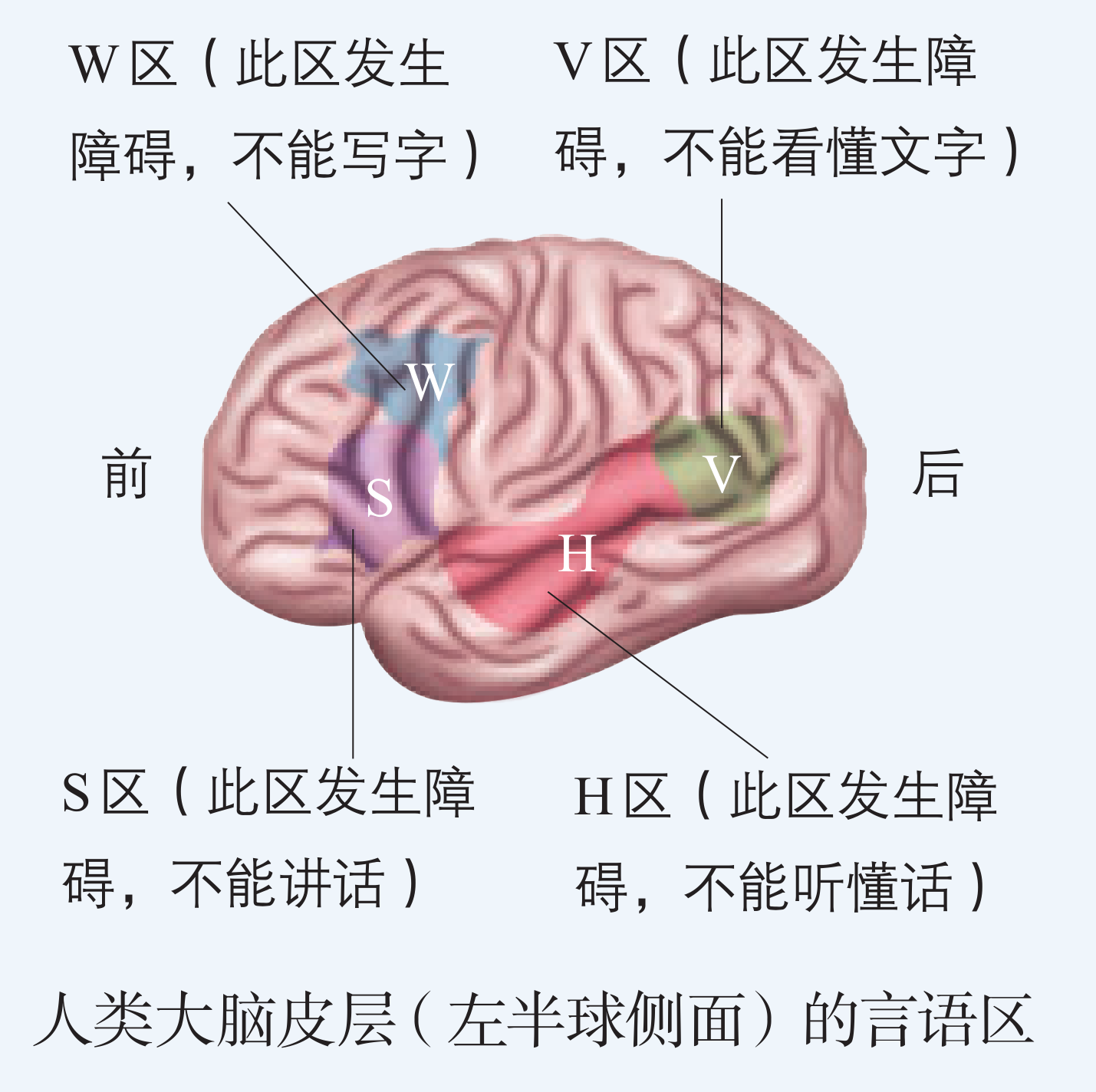 人类的语言活动是与大脑皮层某些特定区域相关的,这些特定区域叫言语区。大脑皮层言语区的损伤会导致特有的各种言语活动功能障碍。