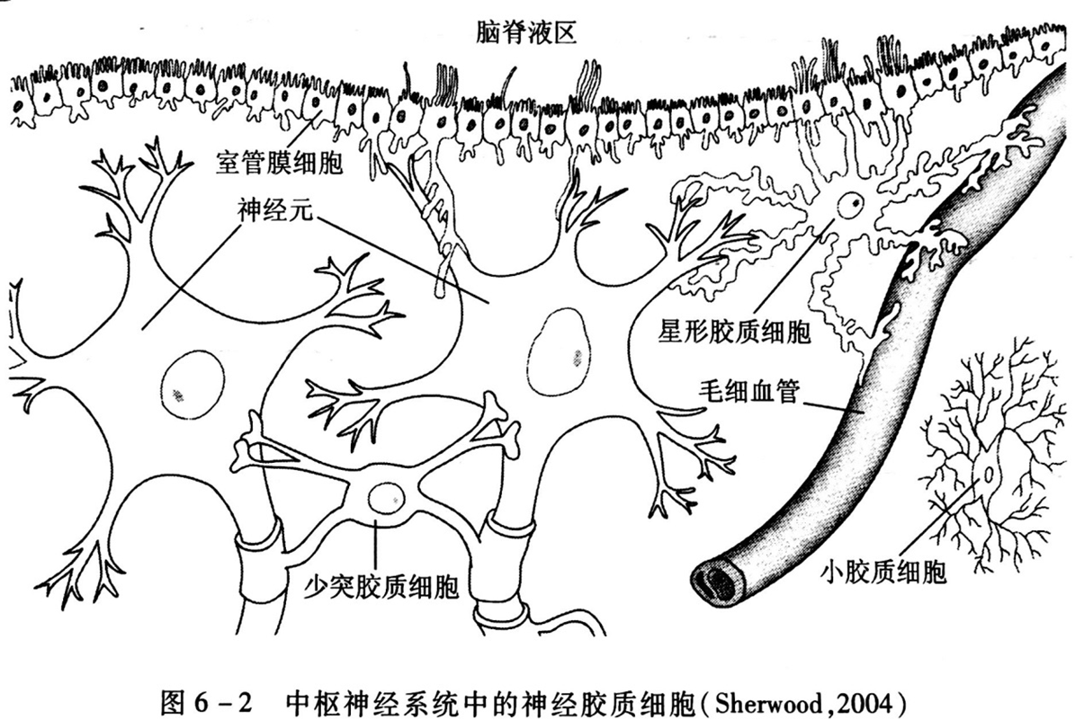神经胶质细胞广泛分布于神经元之间,其数量为神经元数量的数十倍,是对神经元起辅助作用的细胞,具有支持、保护、营养和修复神经元等多种功能。神经元与神经胶质细胞一起,共同完成神经系统的调节功能。