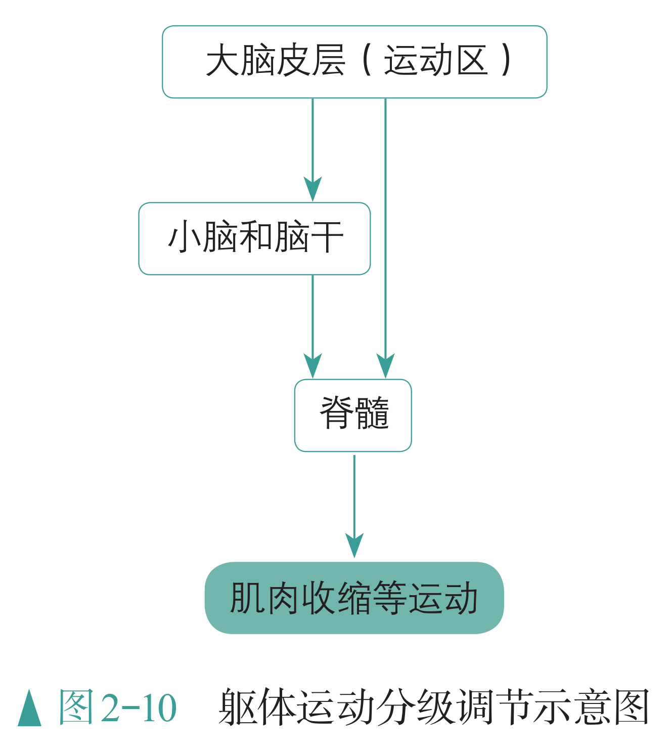 实际上,躯体的运动受大脑皮层以及脑干、脊髓等的共同调控,脊髓是机体运动的低级中枢,大脑皮层是最高级中枢,脑干等连接低级中枢和高级中枢。脑中的相应高级中枢会发出指令对低级中枢进行不断调整,就这样,机体的运动在大脑皮层以及其他中枢的分级调节下,变得更加有条不紊与精准。