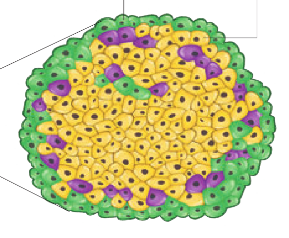 图中紫色部分:胰岛 D 细胞(\(\delta\) 细胞),分泌生长抑素。