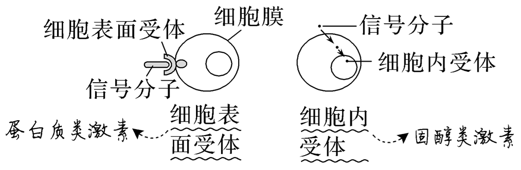 激素种类多、量极微,既不组成细胞结构,又不提供能量,也不起催化作用,而是随体液到达靶细胞,使靶细胞原有的生理活动发生变化。