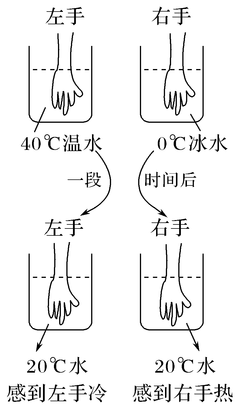 人和高等动物皮肤中分布有感受温度变化的温度感受器,包括冷觉感受器和热觉感受器。