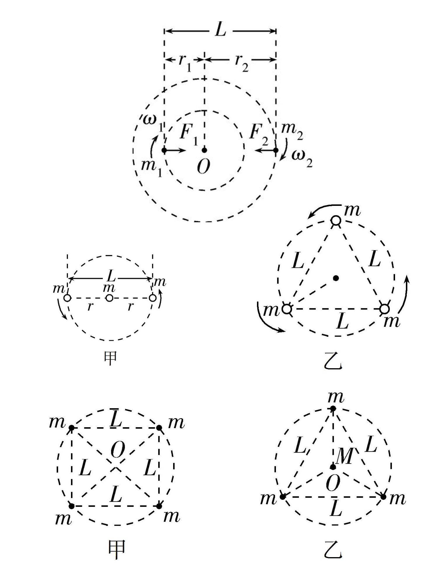 | 双星系统 | \(\omega=\sqrt{\dfrac{GM}{r^3}}\) | \(T=2\pi\sqrt{\dfrac{r^3}{GM}}\) |