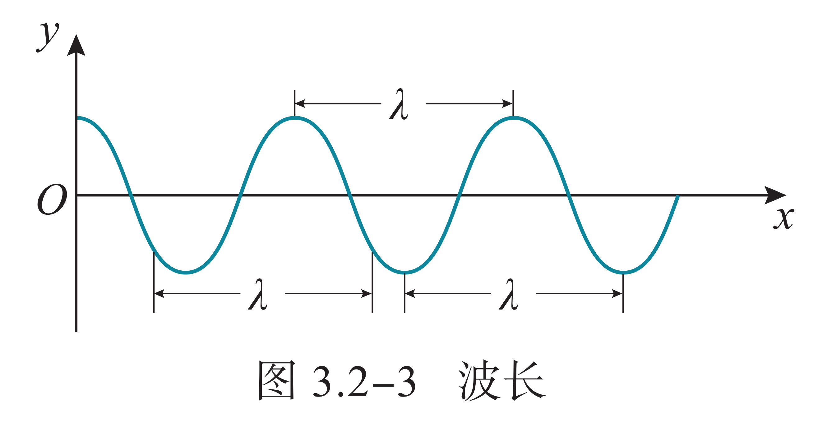 在波的传播方向上,振动相位总是相同的两个相邻质点间的距离,叫作波长,通常用 \(\lambda\) 表示。