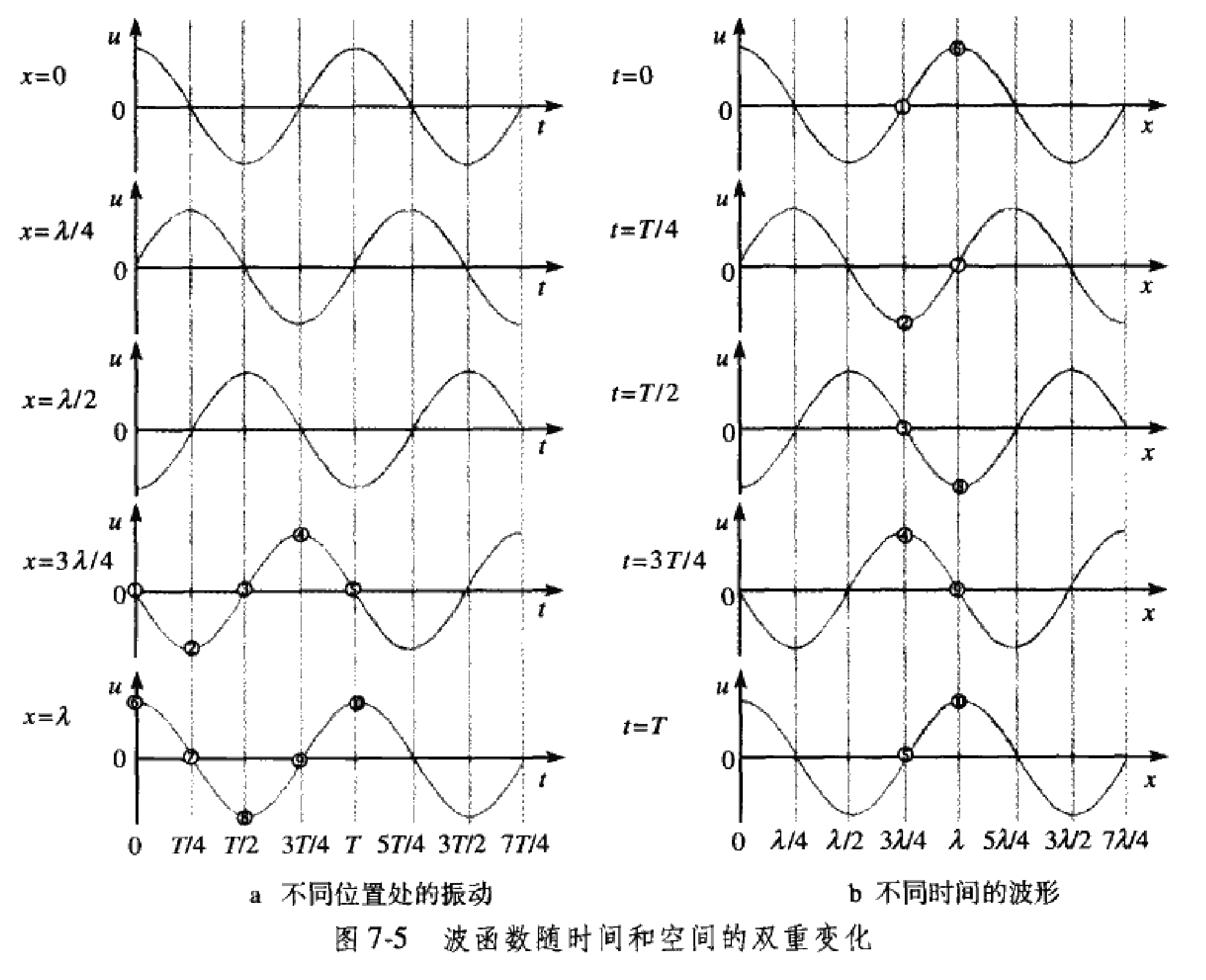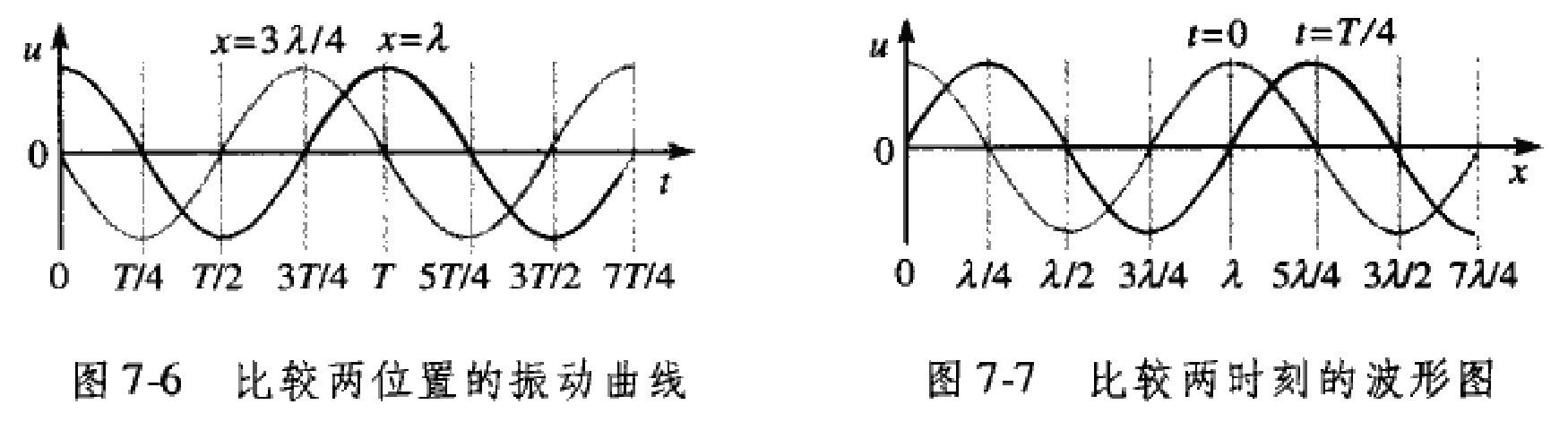 如右,波形图表示介质中的“各个质点”在某“一时刻”的位移(\(u-x\))。