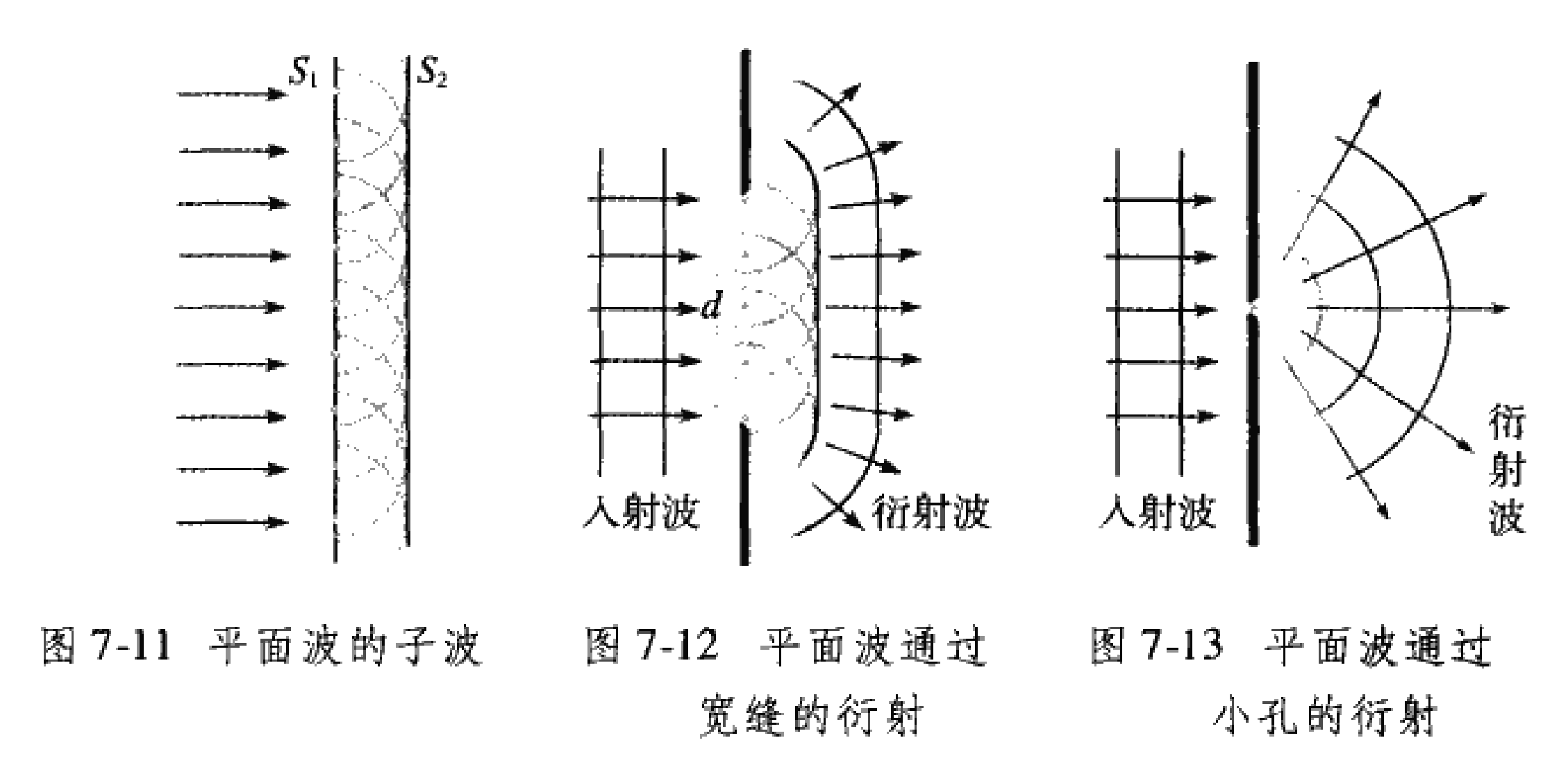 波除了能绕过障碍物的传播之外,在达到两种介质的界面时,还能发生反射和折射现象。这在光波的传播中具有重要意义,我们将在光学部分中再来讨论。