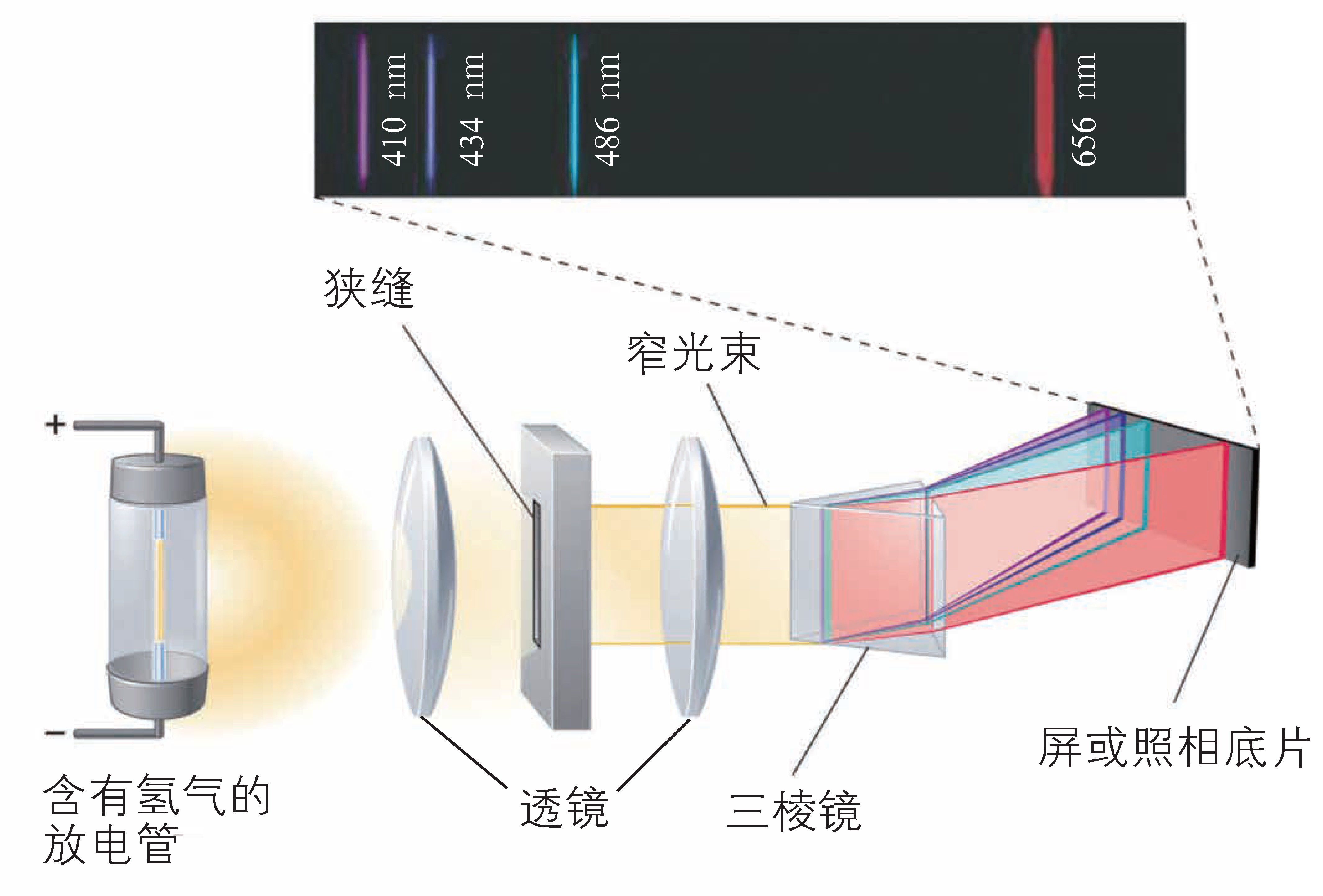 不同元素的电子发生跃迁会释放或吸收不同的光,可以用光谱仪摄取各种原子的「吸收光谱」(从低能量到高能量)或「发生光谱」(从高能量到低能量),总称为原子光谱。